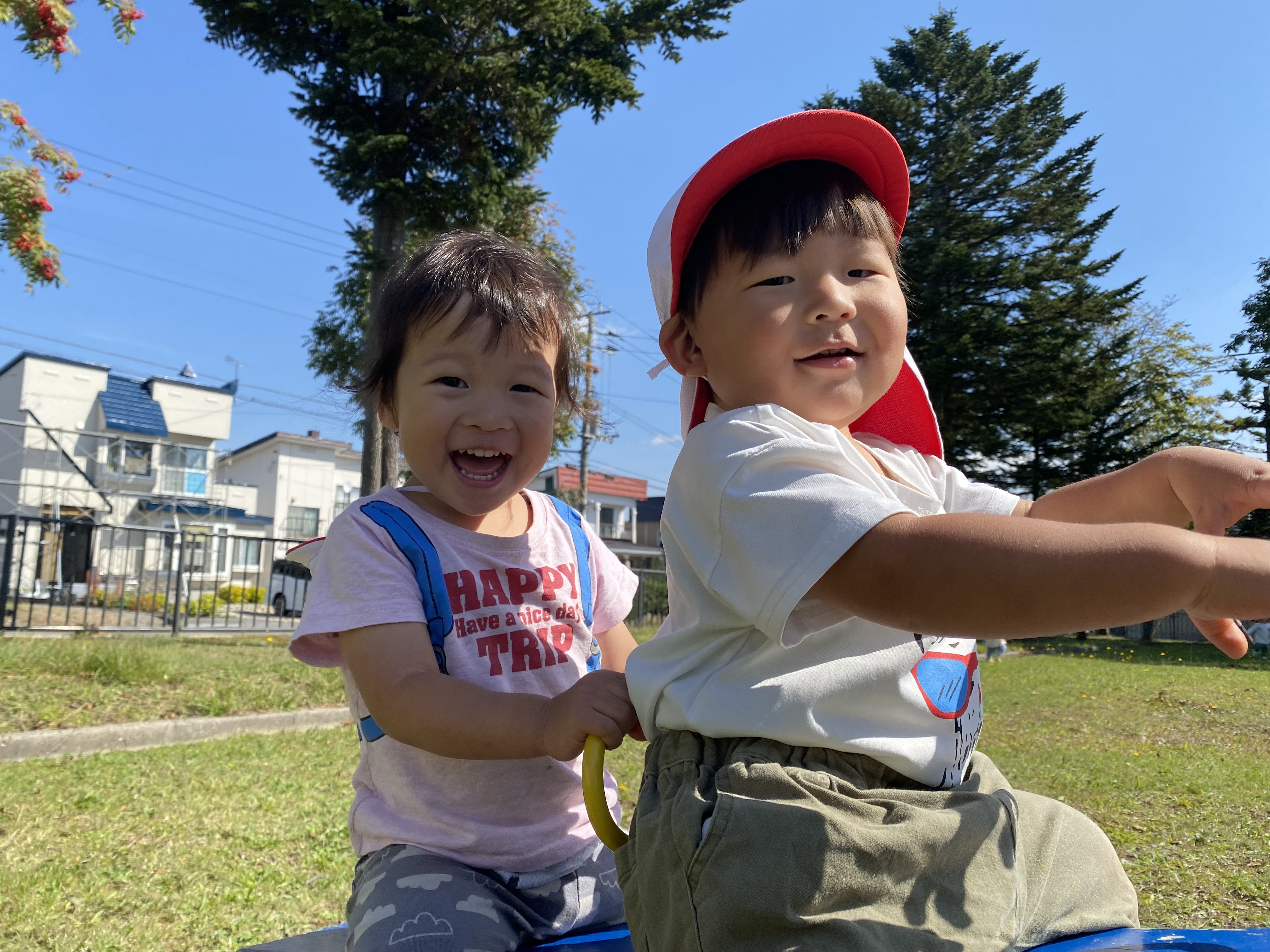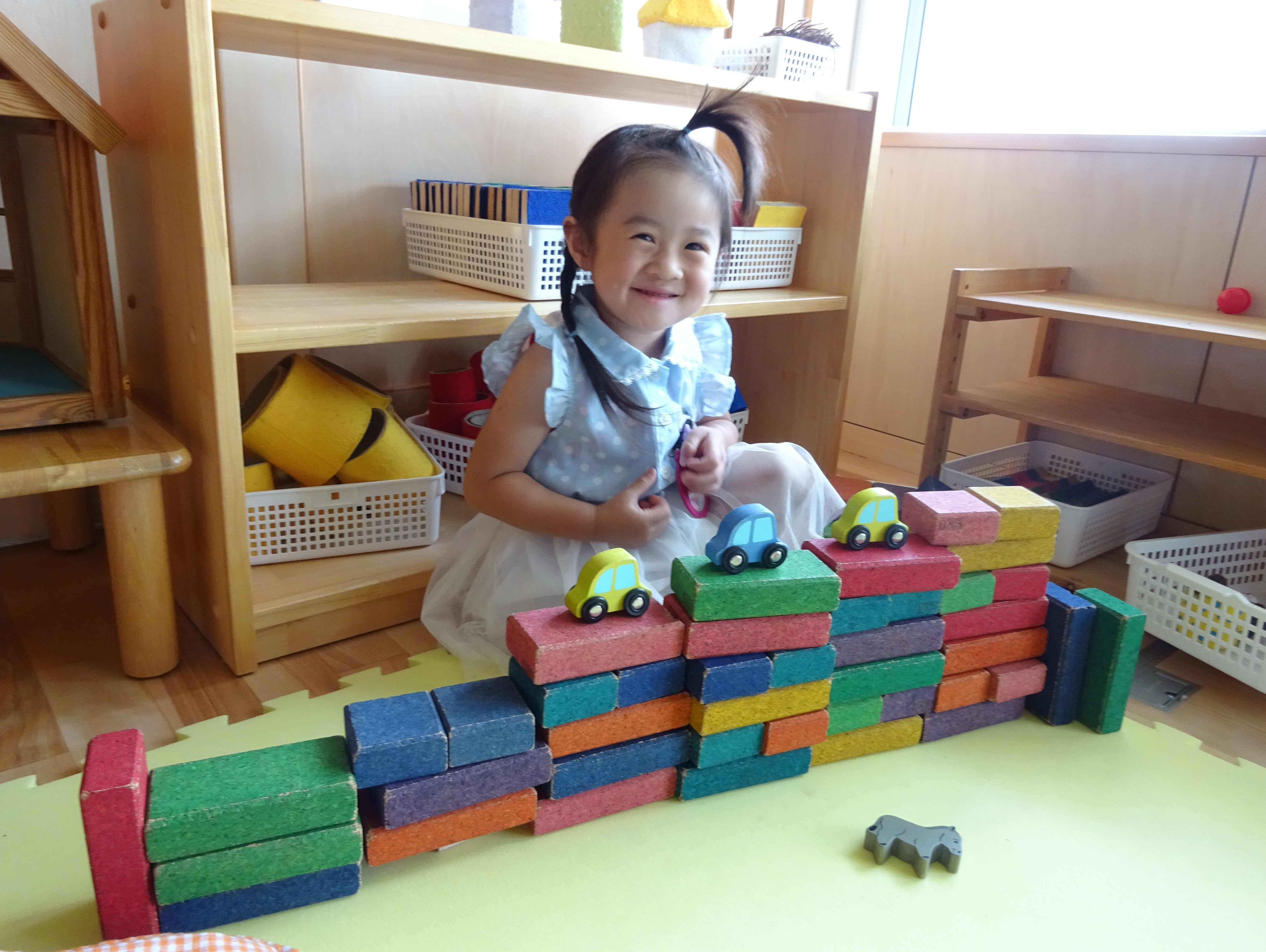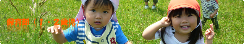 幼児期から共同のあそびを始めるベースとなる1・2歳児のあそびでは、発達段階に合わせた教育内容(あそび)を、個人または集団にその都度提示することや、意欲が十分に満たされるまでひとつのあそびに没頭できるよう、様々な粗大でじっくとあそび込む中で見立てたり工夫したりする経験を大切にしています。